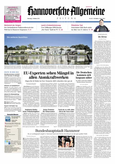 Hannoversche Allgemeine Zeitung - 02.10.2012