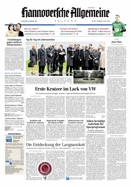 Hannoversche Allgemeine Zeitung - 25.10.2012