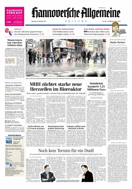 Hannoversche Allgemeine Zeitung - 30.10.2012
