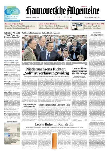 Hannoversche Allgemeine Zeitung - 22.08.2013