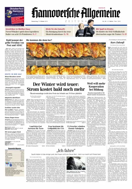 Hannoversche Allgemeine Zeitung - 10.10.2013