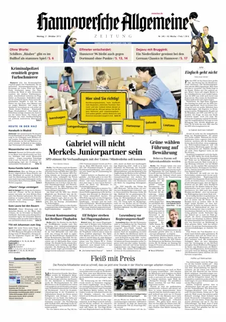 Hannoversche Allgemeine Zeitung - 21.10.2013