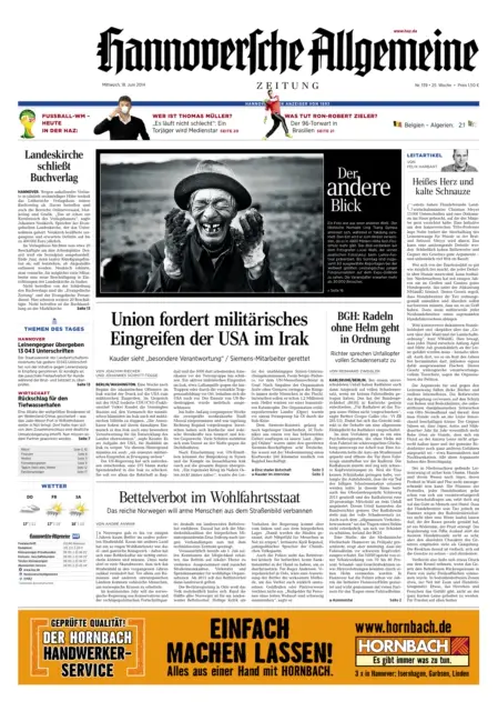 Hannoversche Allgemeine Zeitung - 18.06.2014