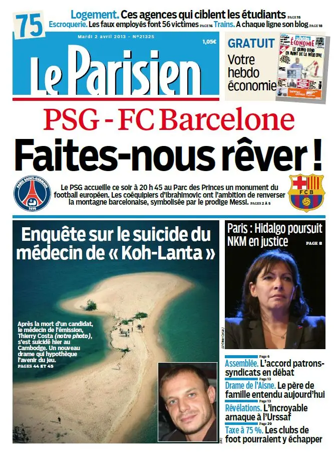 Le Parisien & Cahier Paris du 2 Avril 2013