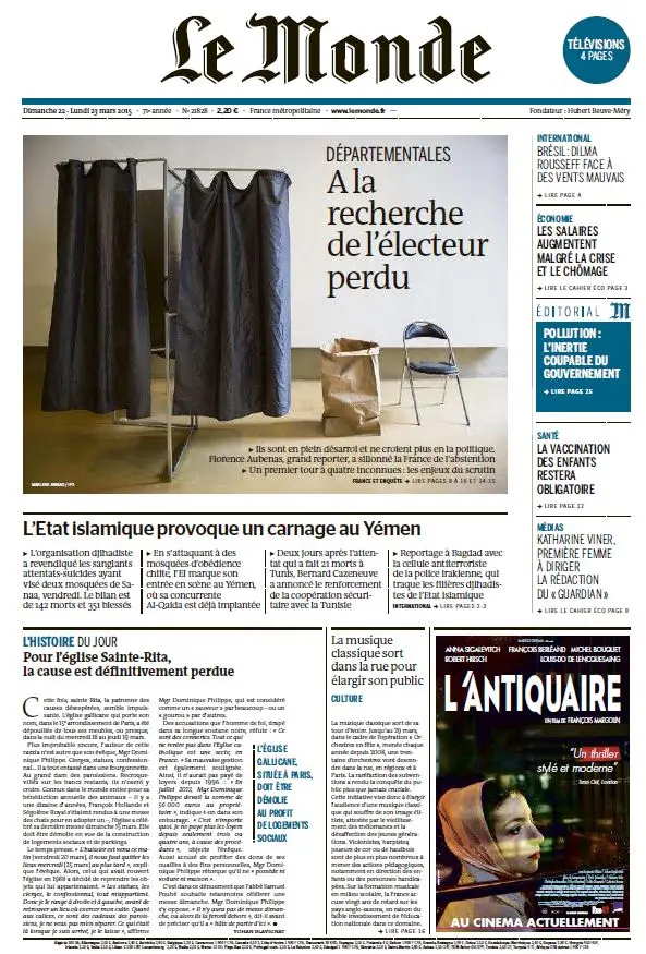 Le Monde du Dimanche 22 et Lundi 23 Mars 2015