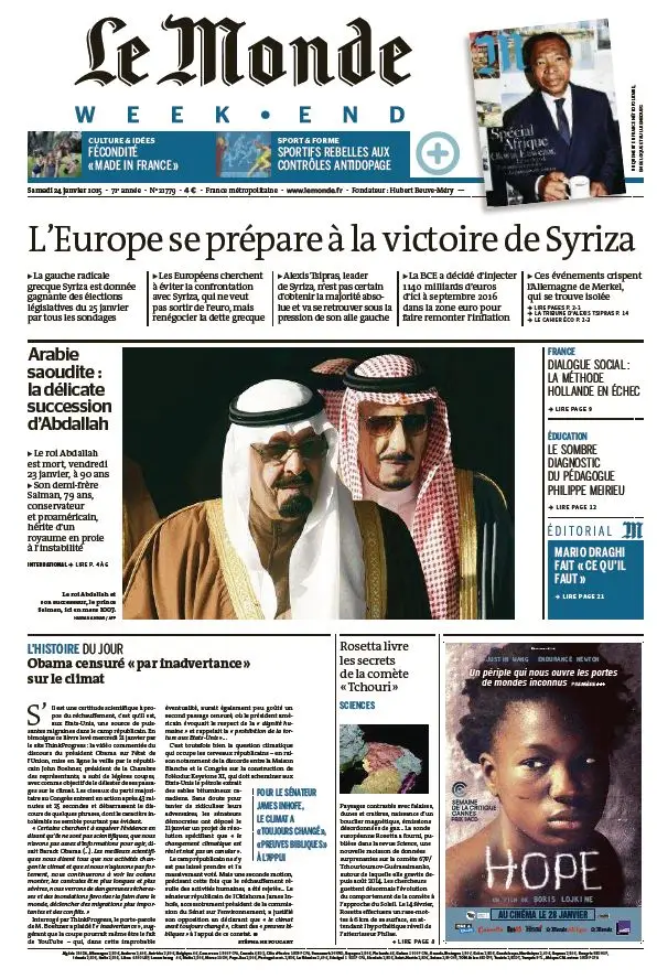 Le Monde Weekend et 4 Suppléments du Samedi 24 Janvier 2015