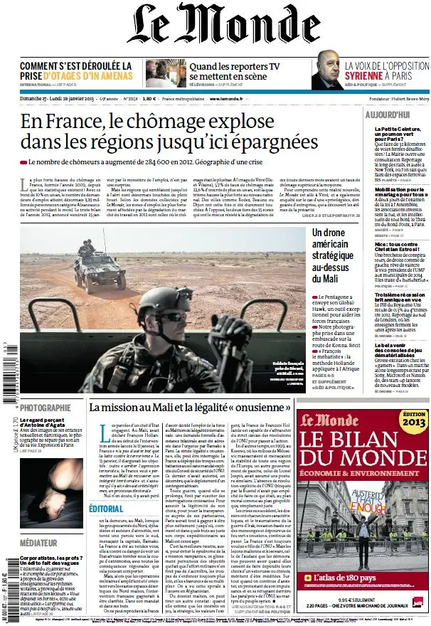 Le Monde et Suppléments du Dimanche 27 et Lundi 28 Janvier 2013