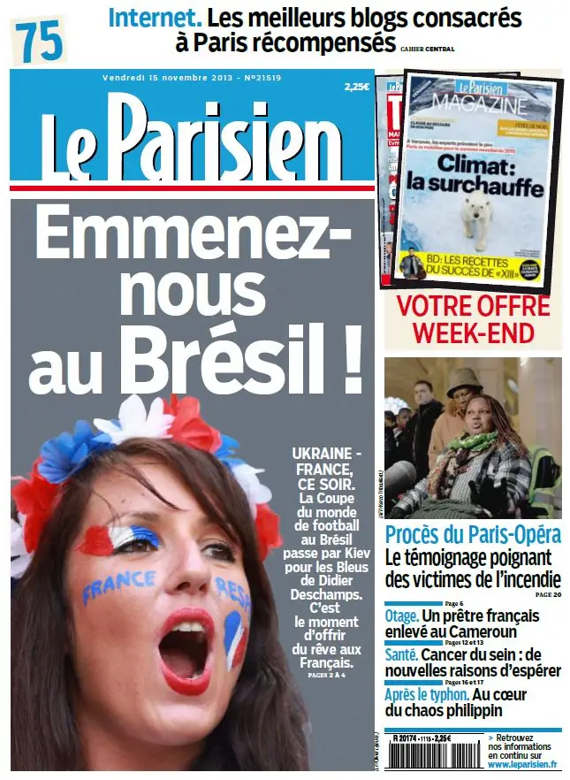 Le Parisien + Journal de Paris du Vendredi 15 Novembre 2013