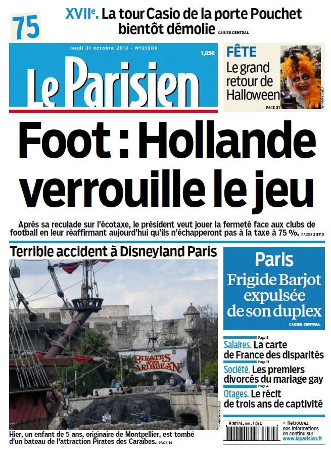 Le Parisien + Journal de Paris du Jeudi 31 Octobre 2013
