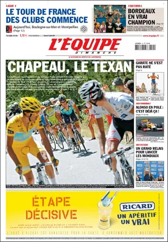 L'Équipe, du Dimanche 26 Juillet 2009.