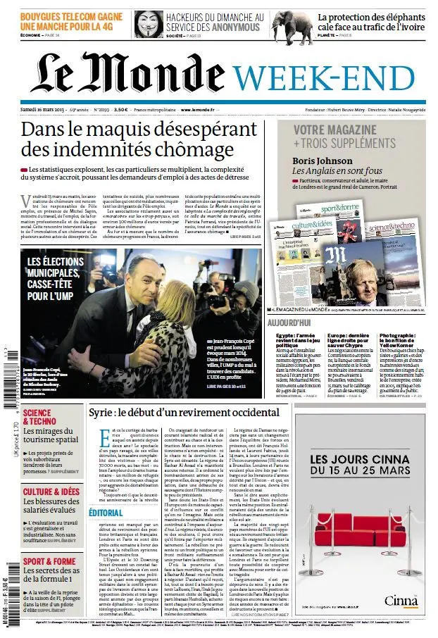 Le Monde Week End + Magazine + Trois Supplements du Samedi 16 Mars 2013