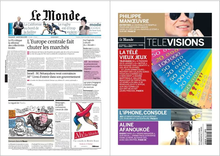 Le Monde + Supplément TéléVisions 22 et 23 février 2009