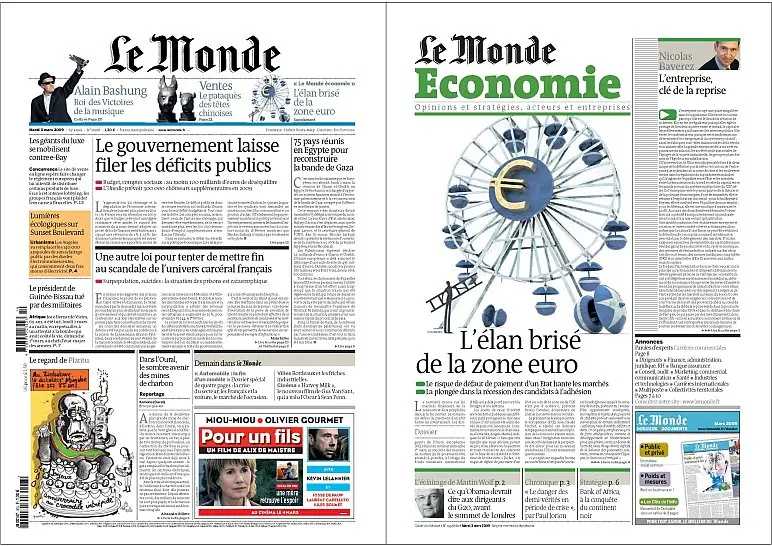 Le Monde 3 mars 2009 + Supplément Economie