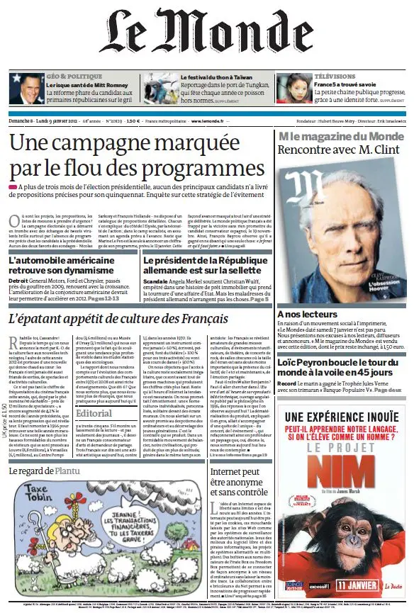Le Monde et Suppléments du Dimanche 8 et Lundi 9 Janvier 2012