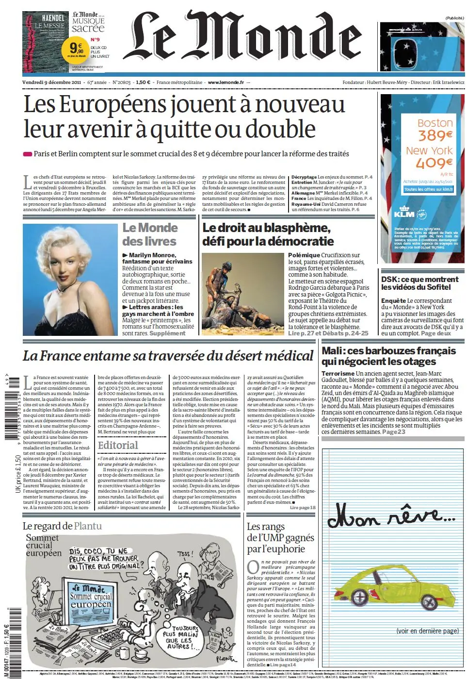 Le Monde & Supplément Livres du Vendredi 9 Décembre 2011