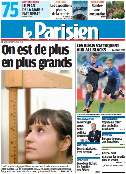 Le Parisien + Cahier Paris - Samedi 24 Septembre 2011