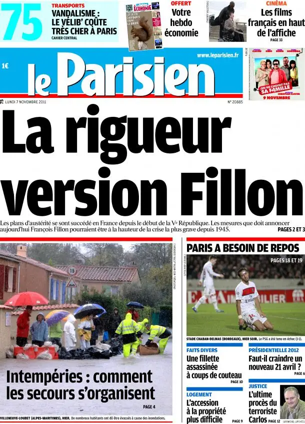 Le Parisien & Le Journal de Paris du Lundi 7 Novembre 2011