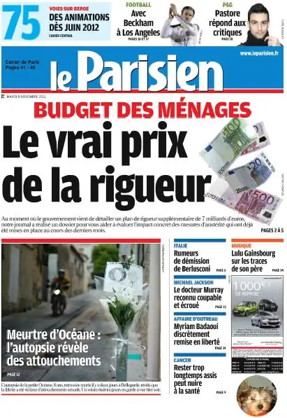 Le Parisien & Le Journal de Paris du Mardi 8 Novembre 2011