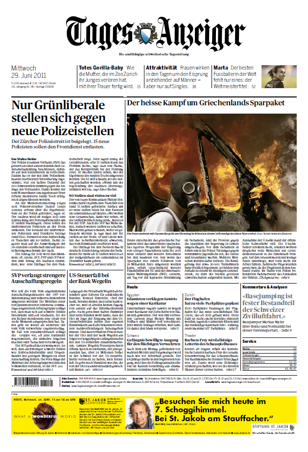 Tagesanzeiger Schweiz 29 06 2011