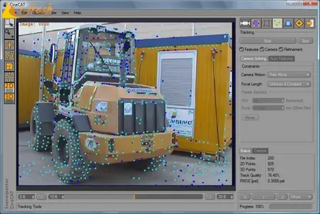 CineCAT offers a full automatic and robust solution for camera tracking inside MAXON Cinema 4D. CineCAT estimates camera parameters and reconstructs 3D points of the scene from image sequences. The estimated parameters can directly be integrated into the Cinema 4D scene.