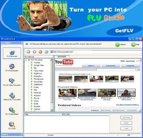 Full service for your FLV video files• GetFLV is a totally integrated suite of powerful utilities to download, manage, convert, repair and play FLV video files (Flash video).