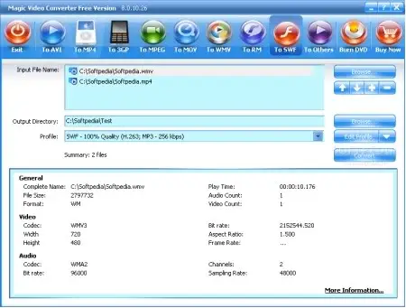 With Magic Video Converter you can:Convert AVI, MPEG, MPEG 1, MPEG 2, MPEG 4, VCD, DVD, SVCD, RMVB, RM, WMV, MOV, DIVX and other video formats.