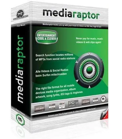 Mediaraptor v4.2.12400 | 49 Mb The total entertainment program that fills up your hard drive Get your music, videos and films free of charge and in the right file format every time. Find your music instead of just looking for it Are you looking for a certain song or music video by your favorite artist? Mediaraptor can find what you need in more than 10 of the best internet portals. Just enter what you're looking for in the search field and Mediaraptor will record it automatically from social radio stations and video portals. It's even easier with the wishlist Simply select and artist or song from the more than 70,000 artists and create a list with up to 100 entries. Mediaraptor takes care of the rest, quickly, automatically and free of charge!
