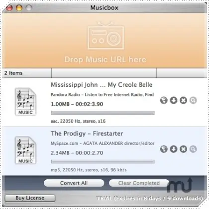 Musicbox 1.1 | MacOSX | 6.73 MB Musicbox can download songs from your favorite music websites, convert it into a native mp3 format and import it into your itunes library so it's ready to be listened to on your Mac, iPod or iPhone.