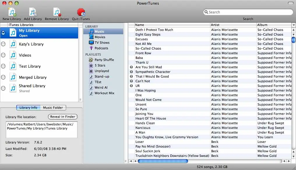 PowerTunes allows iTunes users to create multiple libraries, organize their music among multiple music folders, and share music and libraries between multiple users on a machine.