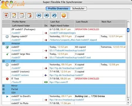 You can set up as many different jobs as you need and run them manually or using the scheduler. The software comes with support for FTP, WebDAV, Amazon S3, and AES file encryption, as well as SSH and ZIP compression. There are powerful synchronization modes, including Standard Copying, Exact Mirror, and SmartTracking.