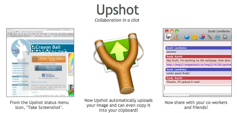 Upshot is the perfect tool for anyone working in a team or with a client. We’ve designed Upshot to be the easiest and fastest way to share whatever you are working on. Send your client an image of your work-in-progress website, show your friends screenshots of your latest game, or share a mockup with a teammate. Just snap a screenshot and paste the link into instant message, email, or twitter account.