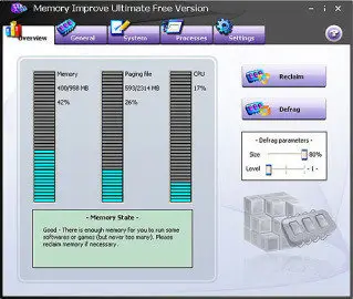 WindowsCare Memory Improve Ultimate v5.2.1.340 Portable | 2.3 MB Memory Improve Ultimate - is powerful memory optimizer software designed to improve and monitor windows memory. It can free up wasted RAM automatically and compress system memory to make processes run faster with greater stability. It still has the ability to view and monitor data of RAM memory, paging file usage and CPU usage in real time. It is a feature-rich yet easy-to-use program. Memory Improve Ultimate designs a recommend button for new users to operate easily. In addition, Memory Improve Ultimate can easily be used by both beginners and experienced users.