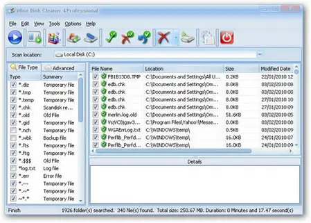 Wise Disk Cleaner can identify more than 50 types of junk files, and you can customize the list. The program only deletes the files that you tell it to. You can choose to have the files permanently deleted, or else first moved to the Recycle Bin. And you can have the program do the cleanup automatically, or you can do it manually. You'll be amazed at how much hard disk space this program can gain for you, so automatically got back plenty of hard disk space. (For example: On my laptop, it found 872 MB of junk) The Professional Edition provides many advanced options. It lets you identify more junk files and old files. And for your safety, you can move these files to a designated folder, allowing you to restore them if needed.