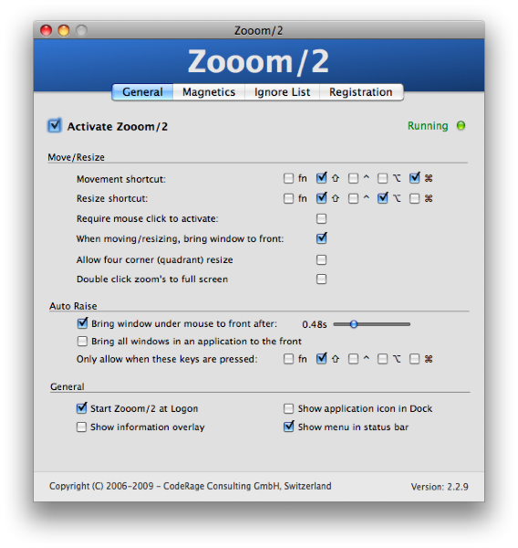 Zooom 2.2.9 | Mac Os X | 4.4 MB Zooom makes moving, resizing and zooming your application windows an effortless process. It's how windows should have been made. Once you get used to using Zooom, you'll be wondering how you ever managed to live without it.