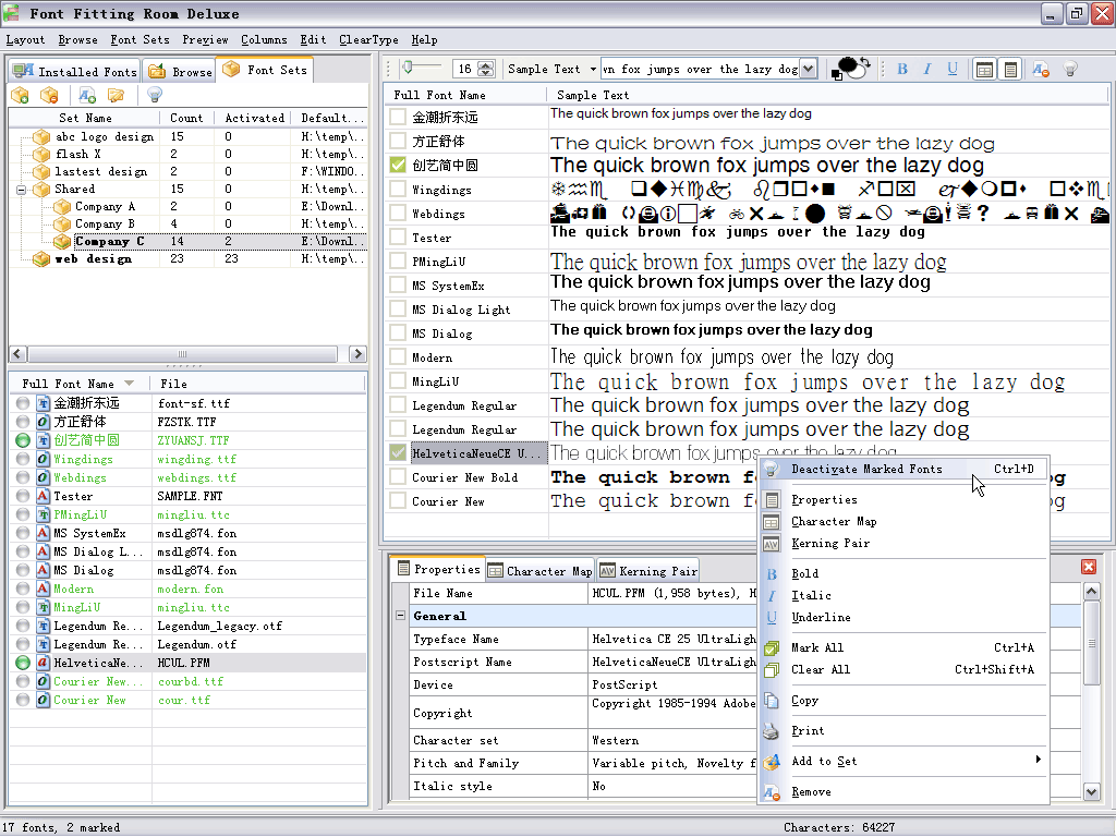 Font Fitting Room - Deluxe ver. 2.8.0.3 | 2,27 MB Font Fitting Room handles the most popular font types used on PC today, helps you to quickly preview them, easily add them to and remove from your system. Supported font types include: True Type font(*.ttf, *.ttc), Open Type font(*.ttf, *.ttc,*.otf),PostScript Type 1 font(*.pfm,*.pfb), and Microsoft Windows font(*.fnt, *.fon).