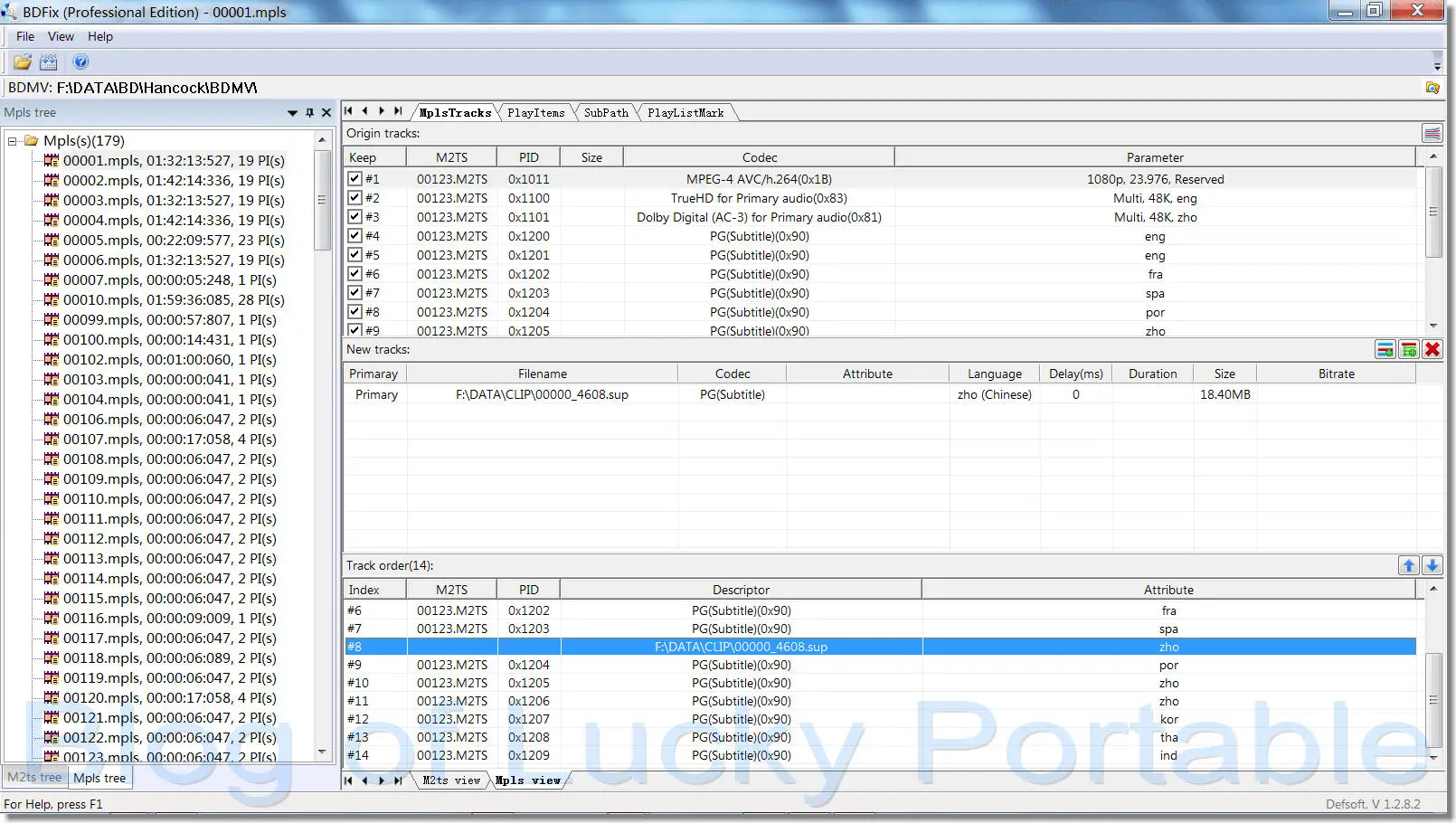 BDFix - a great reauthoring tool which can directly edit unencrypted BD titles (HDMV or BD-J) as you like. User can add, remove or replace video/audio/subtitle track of any BD titles created with any authoring application directly. With just a few clicks, you can build your own version of title. Unique mpls mode especially helps you reauthor the titles with multi-version or multi-segments easily. You only need prepare one whole stream for each playlist track and needn't cut them into several segments manualy.
