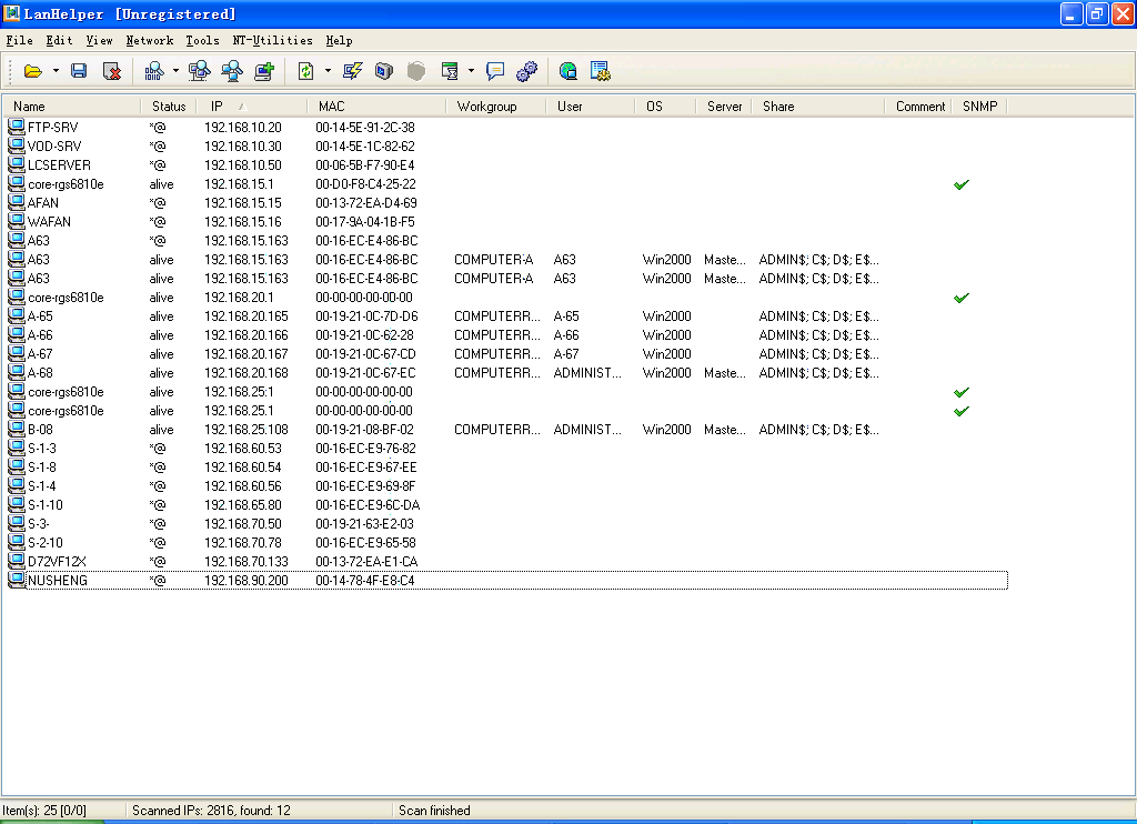 Key Features:1. Discovery all available computers on your office network or home network through a range of IP address, multiple workgroups & domains or the whole LAN, and collects plenty of machine data such as IP address, MAC address, SNMP, NetBIOS, etc.