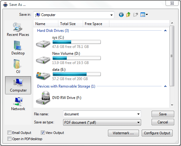 Create PDF, EPS, PostScript, TEXT, JPEG, TIFF, PNG, PCX, BMP, PSD and PCL-X files from any