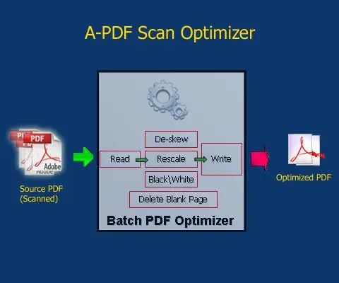 A-PDF Scan Optimizer provides a quick way to batch optimize your scanned PDF documents. A-PDF Scan Optimizer help you to correct the skew scanned image within PDF; convert the scanned image to black/white or gray in Acrobat PDF; downsample the image in PDF and delete unused blank page in PDF directly.