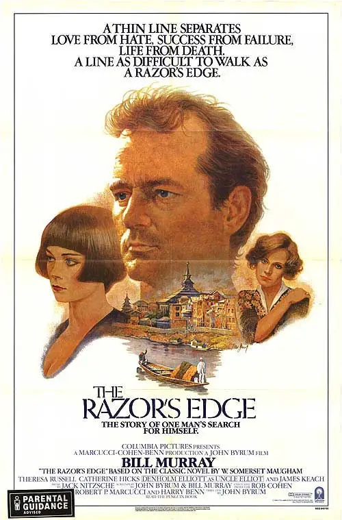 The Razor's Edge was adapted for cinema by Bill Murray and John Byrum from the novel by W. Somerset Maugham. The film was a critical and commercial failure on it's release in 1984.
