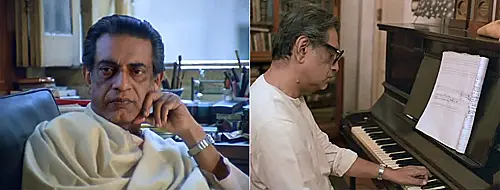 The moments of interview are intersected with extracts from Ray's movies and shootings from the set of the film "Ghare-Baire" (Home and the World) (1984).