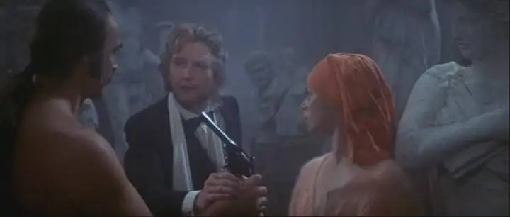 A bewigged Sean Connery is Zed, a savage "exterminator" commanded by the mysterious god Zardoz to eliminate Brutals, survivors of an unspecified worldwide catastrophe. Zed stows away inside Zardoz's enormous idol (a flying stone head) and is taken to the pastoral land of the Eternals, a matriarchal, quasi-medieval society that has achieved psychic abilities as well as immortality. Zed finds as much hope as disgust with the Eternals; their advancements have also robbed them of physical passion, turning their existence into a living death. Zed becomes the Eternals' unlikely messiah, but in order to save them–and himself–he must confront the truth behind Zardoz and his own identity inside the Tabernacle, the Eternals' omnipresent master computer.–Paul Gaita