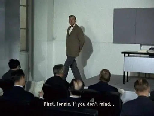 Tourné dans les décors de Playtime, Tati se transforme en professeur d’observation. Il apprend à ses élèves les différentes manières de fumer une cigarette, de monter à cheval, de rater une marche ou de percuter une colonne. Ce film reprend entre autre le numéro de la pêche à la ligne que Tati interprétait à ses débuts au music-hall.